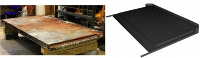 The rear bumper (and step) provides significant strength and rigidity to the rear of the trailer. This large weldment assembly was sectioned to obtain detailed geometry information and thickness.