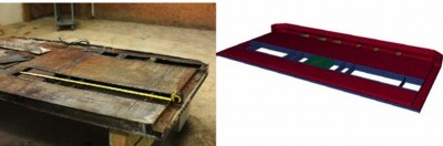 The overall dimensions and plate thicknesses of the upper and lower side rails were measured directly. Sketches were made and photographs were taken. The FE model was created directly from this information using HyperMesh.