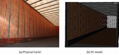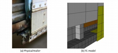The main objective of the trailer FE model is in large scale structural crash simulations, so the constitutive material models have to strike a reasonable balance between available information, model accuracy, model characteristics (e.g., element formulations, discretization), and computational cost.