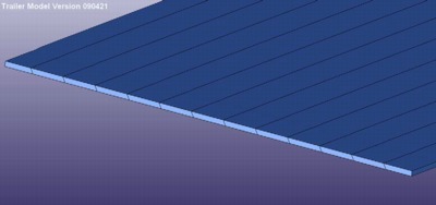 The new trailer model was developed based primarily on the geometry of a 53-ft Stoughton trailer. The CAD geometry was obtained through a collaborative effort between research team and Digimation. Research team staff visited a local Freightliner dealer and surveyed the trailers on their lot. Photographs and measurements were taken and provided to Digimation for use in developing the CAD geometry. This geometry was then used by the research team to develop the FE mesh of the semi-trailer.