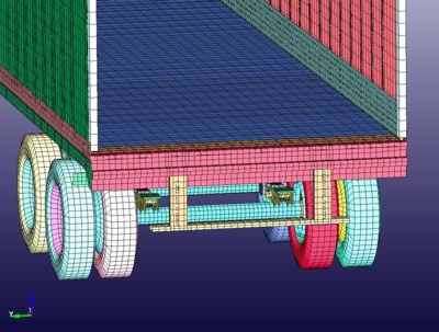 The trailer materials were implemented as a separate file to be included into the overall model. This simplifies material management and provides for reformulation of material properties in the model.