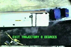 The acceleration data from the test were collected using triaxial piezoresistive accelerometers, and the angular velocities were collected using Analog Systems 3-axis rate transducer. The Electronic Recording Devices (ERDs) were mounted at two locations: 1) the primary ERD set was mounted to the trailer floor on the inside of the trailer near the tandem axles of the trailer and 2) the secondary ERD set was mounted near the tractor tandem axles. Unfortunately, data were not recorded for the secondary ERD set due to a premature triggering of the ERD. Four AOS high-speed video cameras with recording speeds of 500 frames/sec and six digital video cameras with recording speeds of approximately 30 frames per second were used to film the crash test.