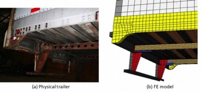 The main objective of the trailer FE model is in large scale structural crash simulations, so the constitutive material models have to strike a reasonable balance between available information, model accuracy, model characteristics (e.g., element formulations, discretization), and computational cost.